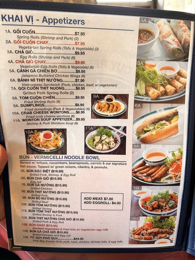 Pho Duy, a Vietnamese restaurant located in Denver, offers a variety of flavorful dishes with options for vegans and vegetarians. Customers rave about the hearty and comforting pho broth, generous meat portions, and delicious egg rolls. The restaurant is praised for its quick service, friendly staff, and ample parking. Visitors from out of town have deemed Pho Duy as one of the best pho places they have tried. Other menu highlights include crunchy and delectable chicken wings, fresh beef Banh Mi, and Vietnamese spring rolls. The cozy ambiance and diverse menu options make it a great spot for lunch or dinner. Overall, Pho Duy provides a satisfying dining experience with delicious food and excellent service.